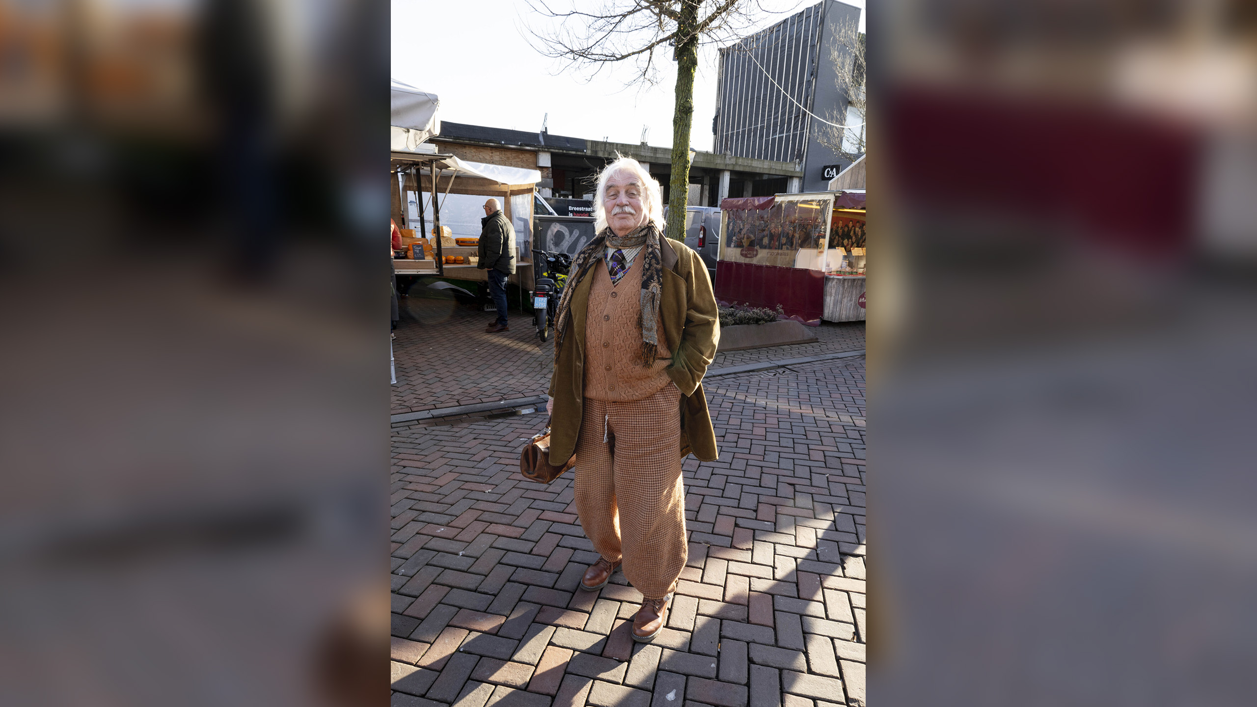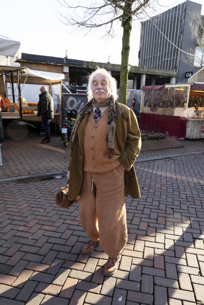 Wat maakt de markt bijzonder? Aparte kraampjes, menselijk contact, speciale mensen, en speciale tafereeltjes. Ook deze. Een marktbezoeker die op zijn zondags de markt op gaat. Sjieke kleding, stropdas, dokterstas, Jan-Terlouw-touwtje. Dat laatste leggen we uit op de expositie in mei in ISOO.